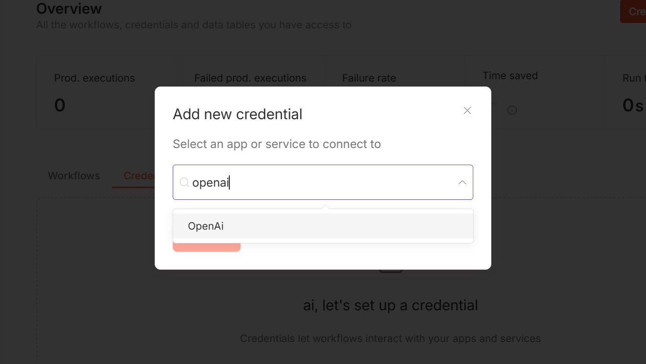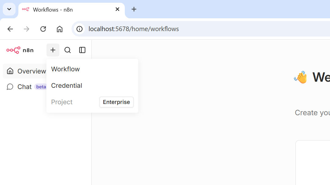 画面左上のn8nロゴの右の「+」ボタンからCredentialを登録します。